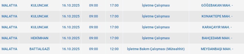 Fırat Elektrik Dağıtım A.Ş. tarafından yapılan açıklamaya göre, şehrin farklı ilçelerinde yürütülecek bakım ve onarım çalışmaları nedeniyle enerji kesintileri olacak.