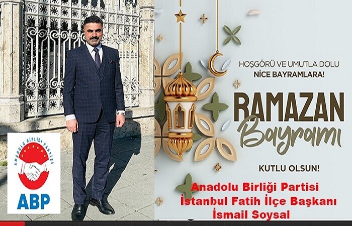 Anadolu Birliği Partisi İstanbul Fatih İlçe Başkanı İsmail Soysal, Ramazan Bayramı Dolayısıyla Bir Kutlama Mesajı Yayımladı.