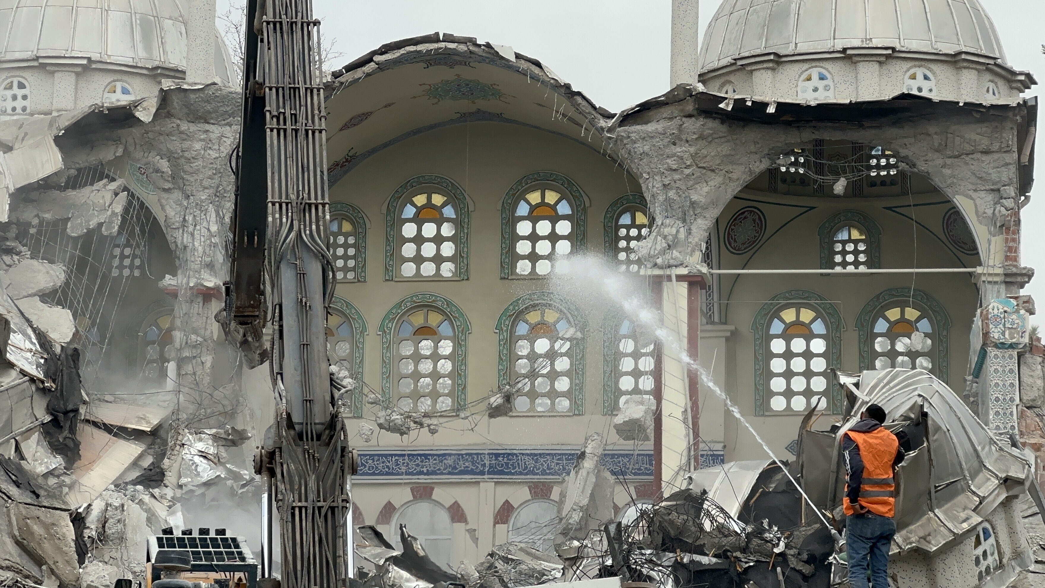 6 Şubat Depremleri’nde hasar alan ve yıkım kararı verilen Sanayi Camii, bugün gerçekleştirilen çalışmalarla kontrollü şekilde yıkıldı.
