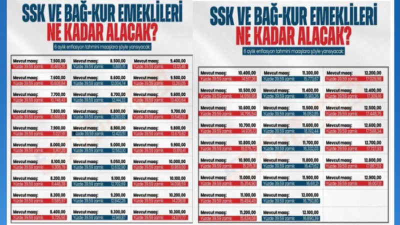 Ocak ayında, SSK ve Bağ-Kur emeklilerinin zam oranı tahmini olarak %39.59 olacak. Memur emeklilerinin zam oranı ise enflasyon farkı ile birlikte %51.44'e ulaşacak.