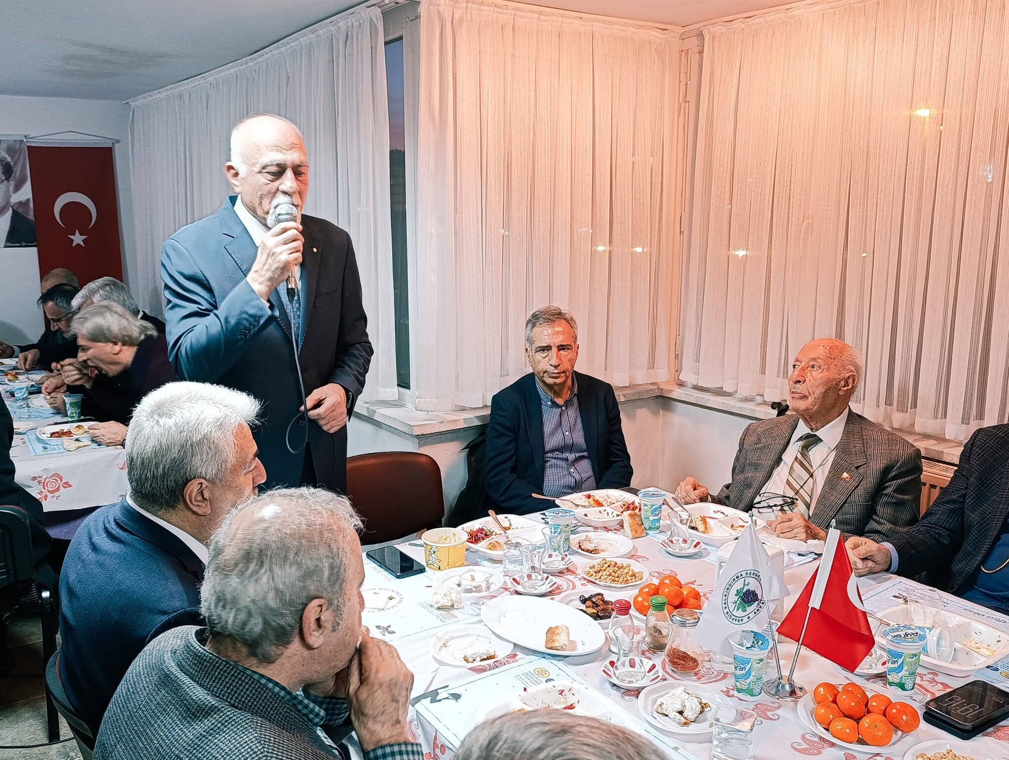 Ankara Arapgirliler Derneği Başkanı Hüseyin Özdemir, Bugün İftar programımıza katılan tüm hemşerilerime ve katılımcılara cani gönülden teşekkür ediyorum. Allah bu ayda yapılan tüm ibadetleri ve tutulan oruçları kabul etsin.. Bu gönül sofrasında birlikte iftar açmanın ve birlikte bir sofra etrafında toplanmanın mutluluğunu hep birlikte yaşıyoruz. Ramazan manevi atmosferin yoğun olduğu bir aydır. Bizlerde bugün burada bu güzelliği hep birlikte yaşıyoruz. Bugün gönül soframızda bir birinden kıymetli misafirlerimiz var. Sayın Valilerimiz , Belediye Başkanlarımız, Milletvekillerimiz, Siyasi Parti Başkan ve Temsilcilerimiz, Bürokratlarımız ve Sivil Toplum Temsilcilerimiz var. Ankara Arapgirliler Derneği’mizin düzenlediği her programımızda bizleri yalnız bırakmıyorlar. Ayrıca her programımıza desteğini esirgemeyen Hemşerimiz Malatya’mızın gururu Çankaya Belediye Başkanı Hüseyin Can Güner Başkanıma da sizlerin huzurunda cani gönülden teşekkür ediyorum.
