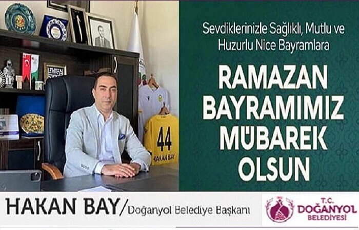 Doğanyol Belediye Başkanı Hakan Bay, Tüm İslam âleminin mübarek Ramazan Bayramı’nı yürekten kutluyor, Cenab-ı Allah’tan bayramımızın hayırlara vesile olmasını diliyorum.”
